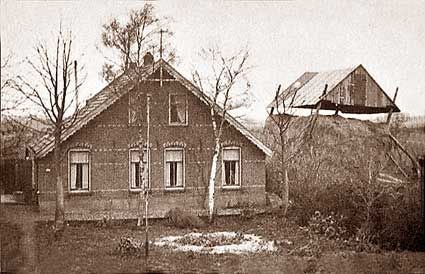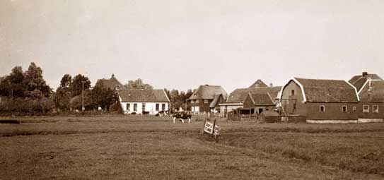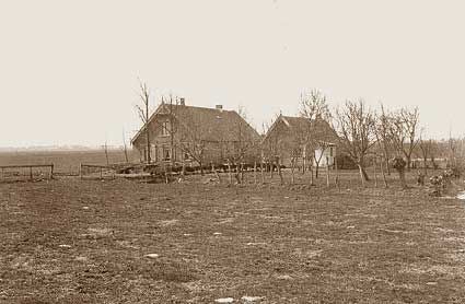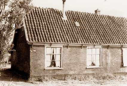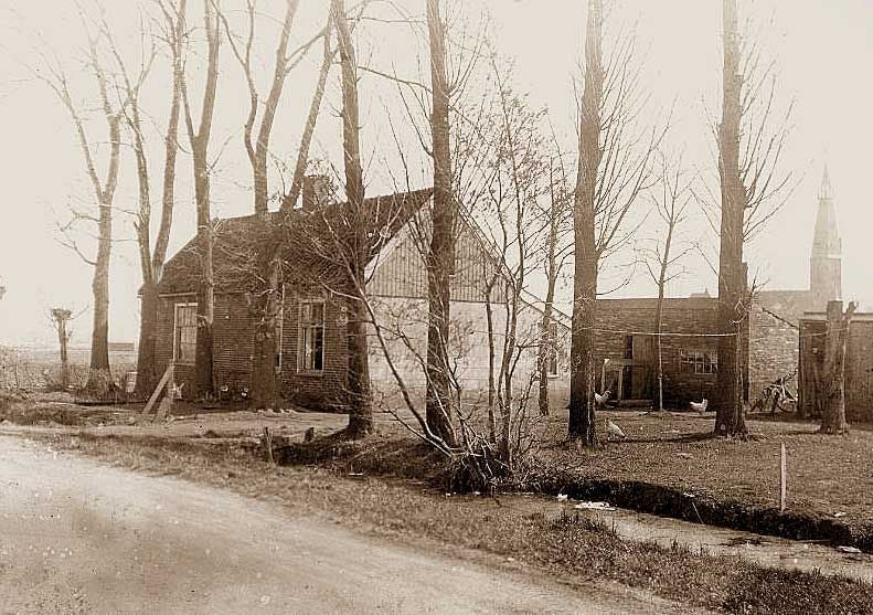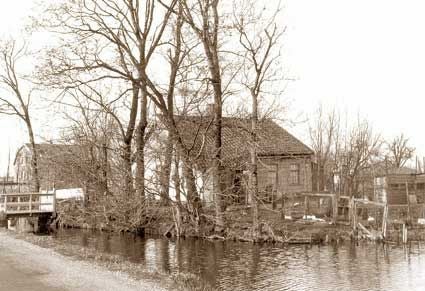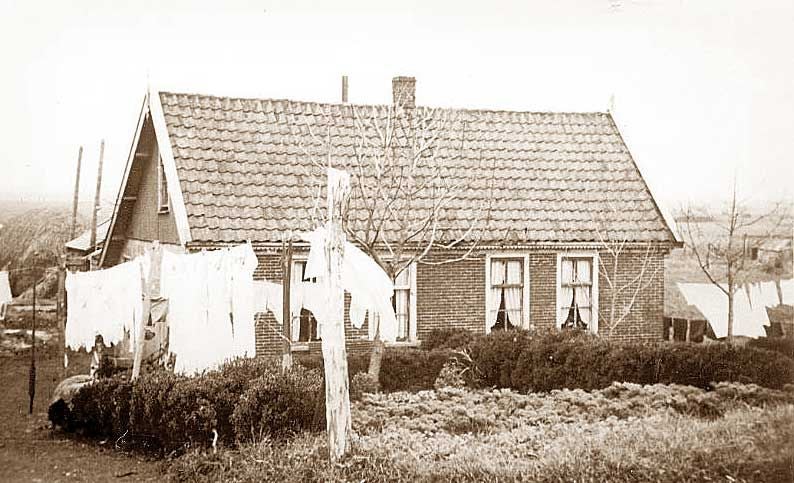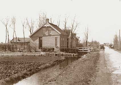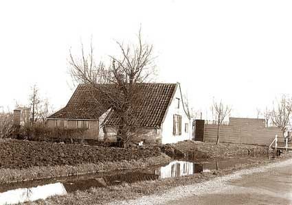 Boven en onder: Kleine Noorddijk 81, de boerderij van Cornelis Hoogeveen en Cornelia Maria de Roos, nummer 98 op de onteigeningskaart, iets links aan de overkant stond de boerderij van Johannes Sloothaak, en links daarvan de boerderij van zijn broer Jacob Sloothaak. Samen hebben zij het stuk Burg. Colijnweg, Kleine Noorddijk en Oeverlanden drooggemalen. Foto ong. 1940.