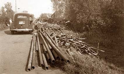 Kruising aan het einde van de Oosteinderweg/Schinkeldijkje/Kleine Noorddijk. Foto ong. 1950.