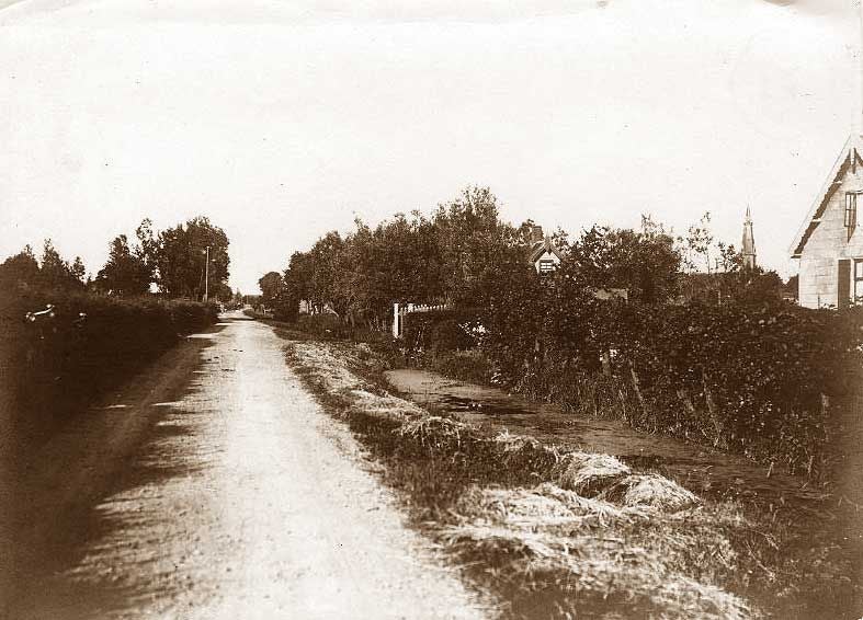 Links: Kleine Noorddijk, rechts op de achtergrond de Sint Urbanus kerk. Rechts: De Kleine Noorddijk, we kijken richting Oosteinderweg. Het huis rechts staat op de hoek Oosteinderweg met de Bosrandweg (Middenweg) en werd bewoond door Gerrit van der Meer, timmerman. Achter de begroeiing aan de rechterzijde van de foto is nu de camping van het Amsterdamse Bos.