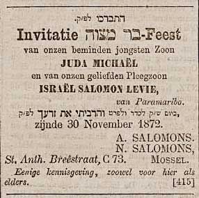 26. Juda Michael SALOMONS, geboren te Amsterdam op 22 november 1859, overleden op 13 januari 1942 te Amsterdam, zoon van Abraham Mozes Salomons Hoedmacher (52) en Annaatje Josua Mossel (53), geloof Joods, zat gevangen in Kamp Westerbork