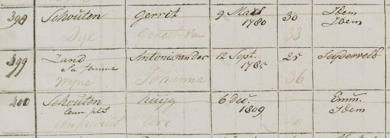 2002. Dirk Hendriksz OVERDEVEST, geboren in ong. 1660 te Voorschoten. Bezat land in Voorschoten. Verder "een wooninge bestaande in huysinge, schuur, barg, boomgaart, potinge en plantinge" en een stuk teelland, zoon van Hendrick Cornelisz van Overvest (4004) en Annetgen Cornelisdr van Adegeest (4005), beroep bouwman