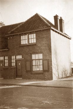 Links de woning aan de Burg. Stramanweg, Rechts het gezin van Arie van der Meer en Johanna Rijs, Ouderkerk a.d. Amstel.