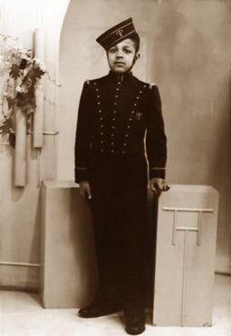 Links, Fons Doorson in dienst als piccolo bij Tuschinsky, 1934, Amsterdam (zie ook de clip uit de film Komedie om Geld (1936) onderin deze pagina).