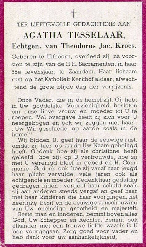 1. Maria Theodora Tessel + 25-8-1959, Landsmeer, 1 jaar oud