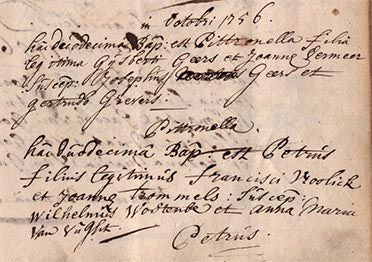 2. Petrus Vrolijk (Vrolyck), ged. 12-10-1756, Teteringen, + 16-11-1756, Teteringen
