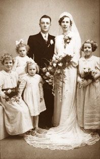 Links huwelijksfoto van To Vrolijk en Kees Fontijn uit 1943, rechts foto van het gezin uit 1964